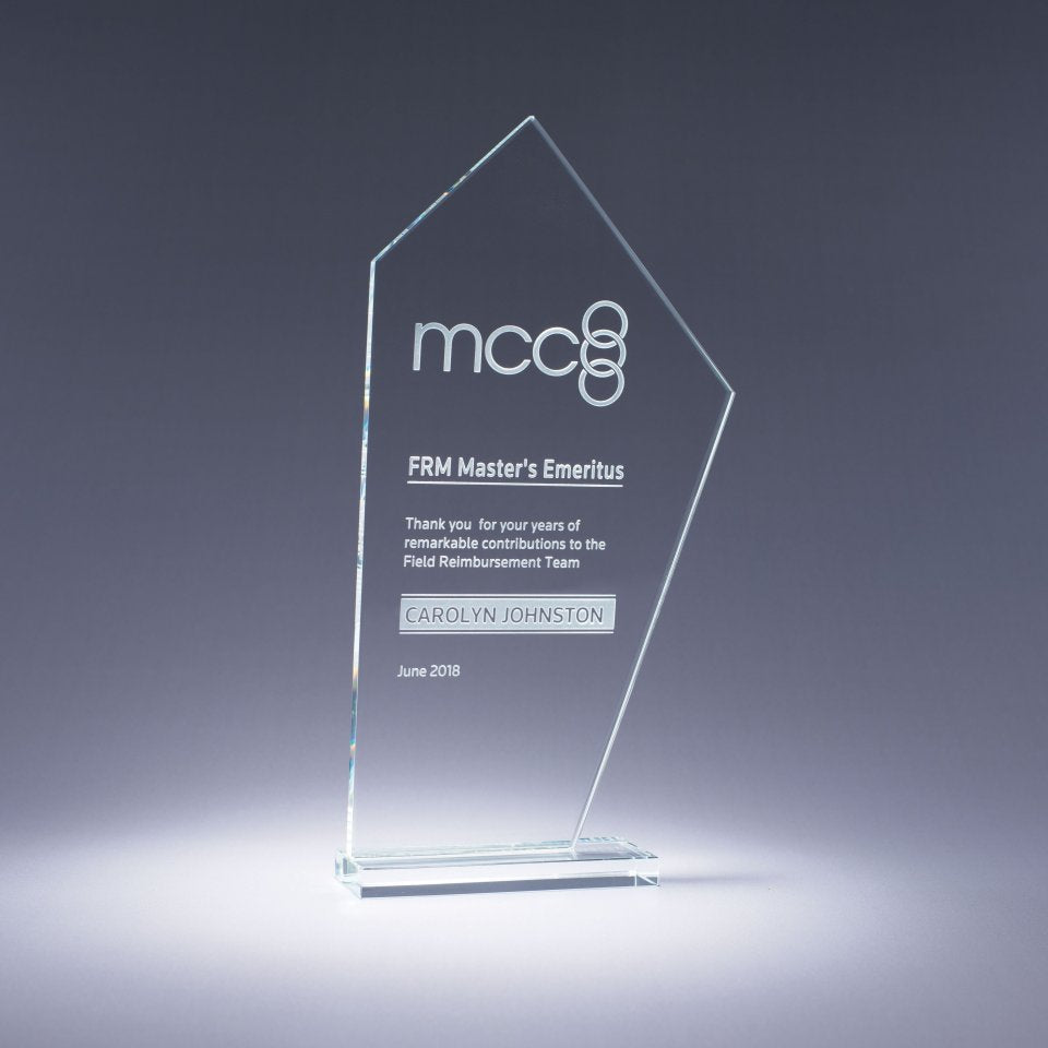 This Starphire award features dramatic angles for a look that is architectural and forward. Rightfully given to those who know no limits.