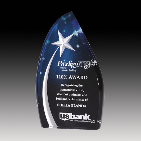 This BLUE STAR ACRYLIC award is made of high-quality acrylic material. It has a unique design that showcases a blue star, symbolizing excellence and achievement. The award is perfect for recognizing outstanding individuals or teams in corporate or academic settings. Its elegant appearance will make a lasting impression on recipients.