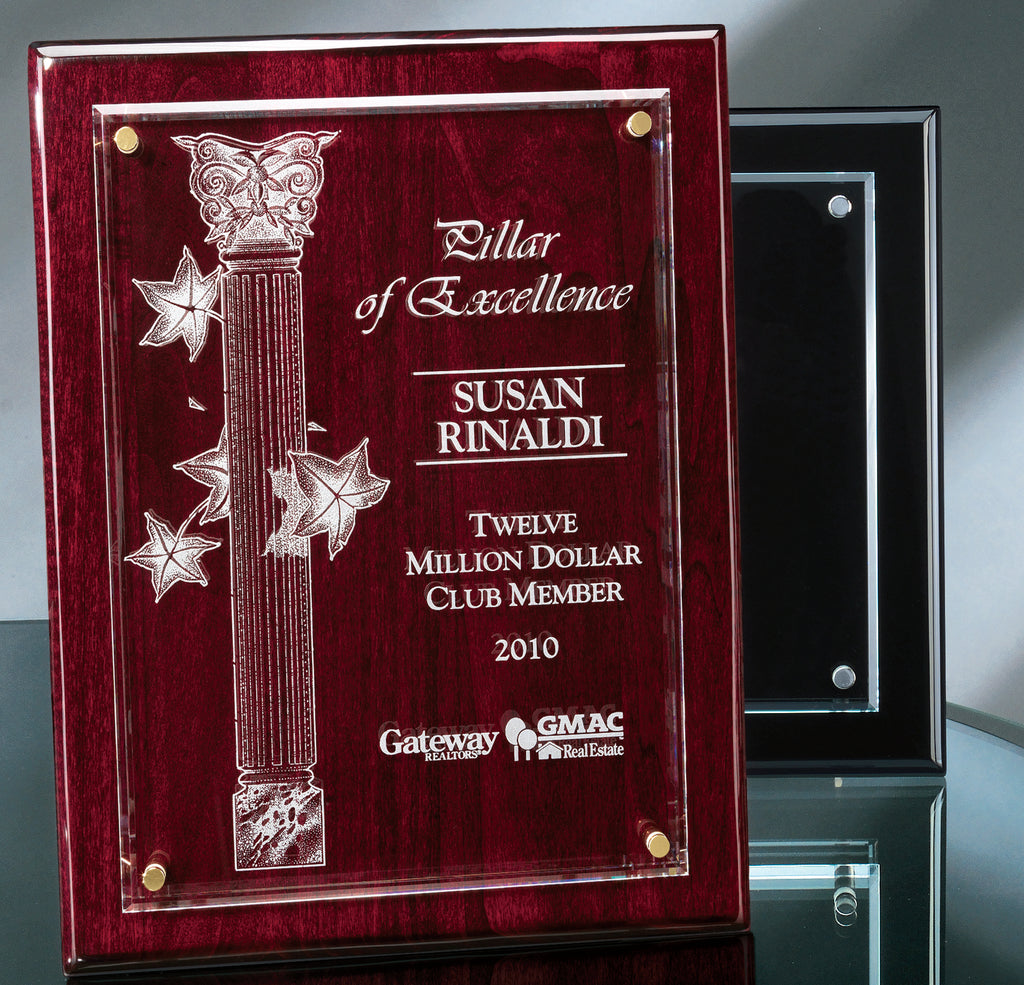 This unique and distinctive award has a clear glass panel offset with silver-toned hardware from a black ebony or rosewood piano finish wood background creating impressive depth. Add custom text, images, or logos to create the perfect presentation gift to honor employees, and members of your organization, or recognize generous donors to your cause. This distinctive item can be a great way to honor Employee of the Month. This item can be a wonderful wedding, birthday, or anniversary gift. Let us help you bring your vision to life! Available in three sizes to suit your needs.