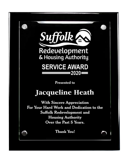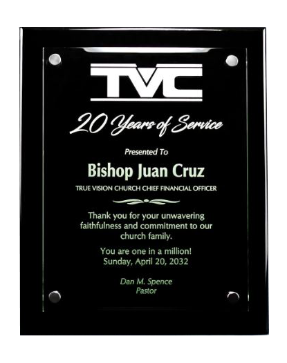 This unique and distinctive award has a clear glass panel offset with silver-toned hardware from a black ebony or rosewood piano finish wood background creating impressive depth. Add custom text, images, or logos to create the perfect presentation gift to honor employees, and members of your organization, or recognize generous donors to your cause. This distinctive item can be a great way to honor Employee of the Month. This item can be a wonderful wedding, birthday, or anniversary gift. Let us help you bring your vision to life! Available in three sizes to suit your needs.