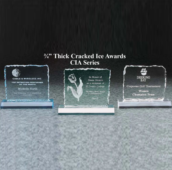 Acrylic block with ice cracked edges comes in three unique colors to present a creative style to your awards.