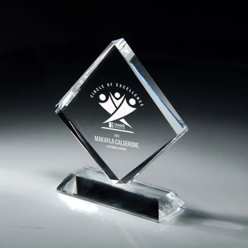 This elegant Crystal Diamond on Base award is a sophisticated way to recognize excellence. Made with high-quality crystal, its stunning design and precise craftsmanship make it a unique and prestigious addition to any award ceremony or event. The perfect choice for commemorating achievements and inspiring future success.