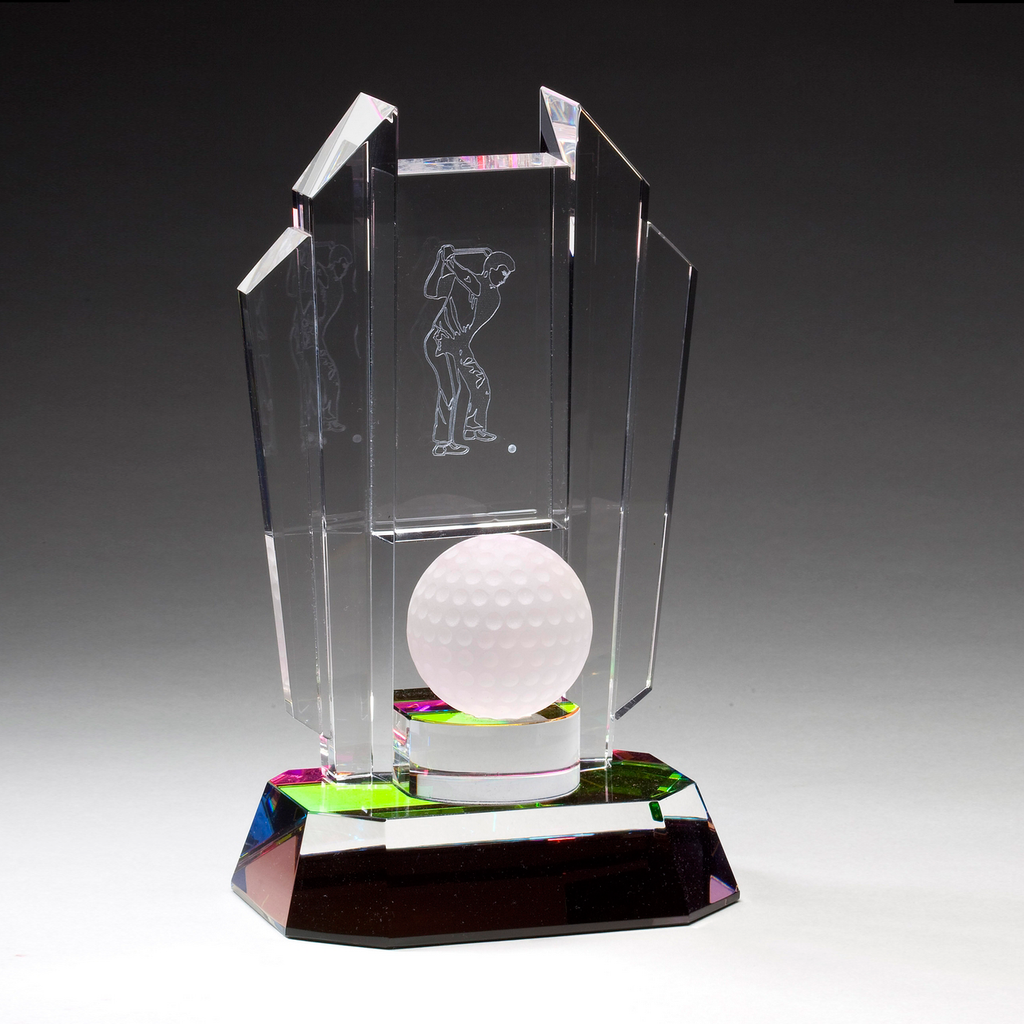 This Crystal Golf Award is a stunning piece that showcases excellence in the sport. Made with high-quality crystal, it features intricate details and a sleek design. Perfect for recognizing outstanding achievements and motivating future success in golf. Make a lasting impression with this prestigious award.