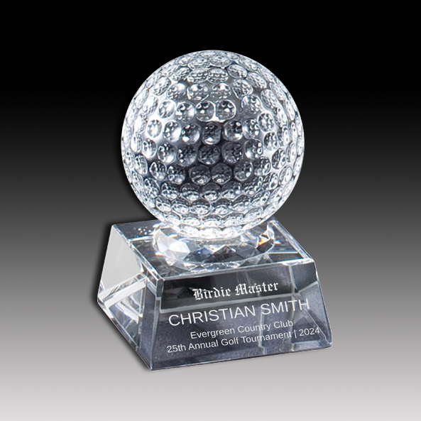 Celebrate the ace in your life with our handcrafted Crystal Golf Ball Award. With stunning etching and a unique design, this 3.5" h x 2.5" x 2.5" award is perfect for any special outing. Fore-ward to a great gift!