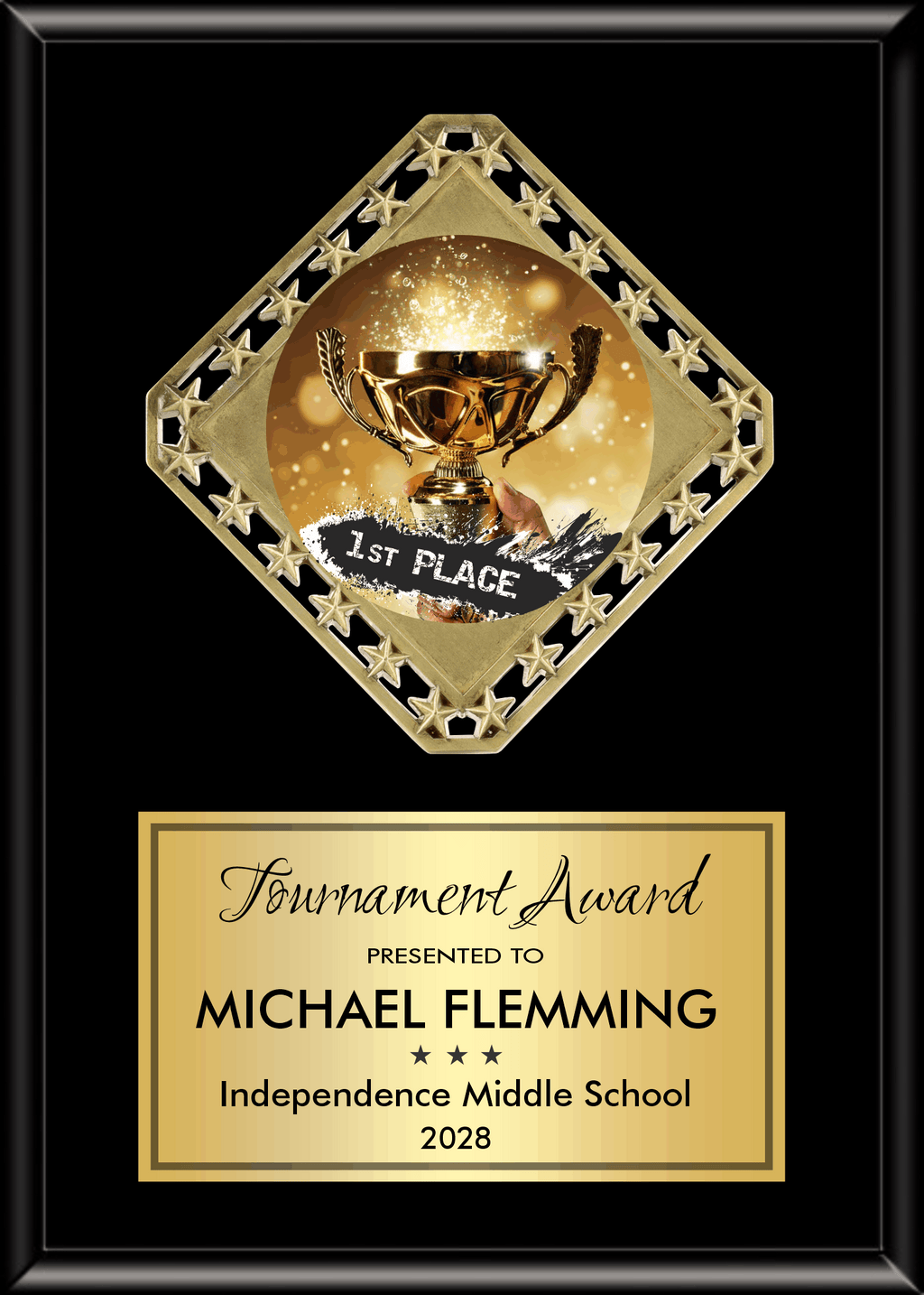 Elevate your event with our Diamond Plaque Series - Vertical Plaque. Featuring an exclusive diamond border medallion, this plaque exudes elegance and impact. Personalize it with a diamond-shaped custom plate or circular activity insert. Available in two colors and five sizes, it's perfect for any athletic or club event.
