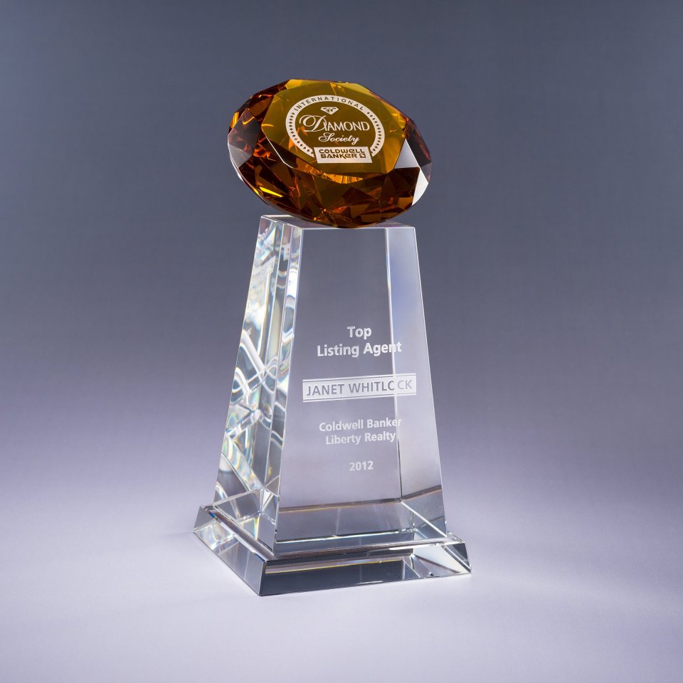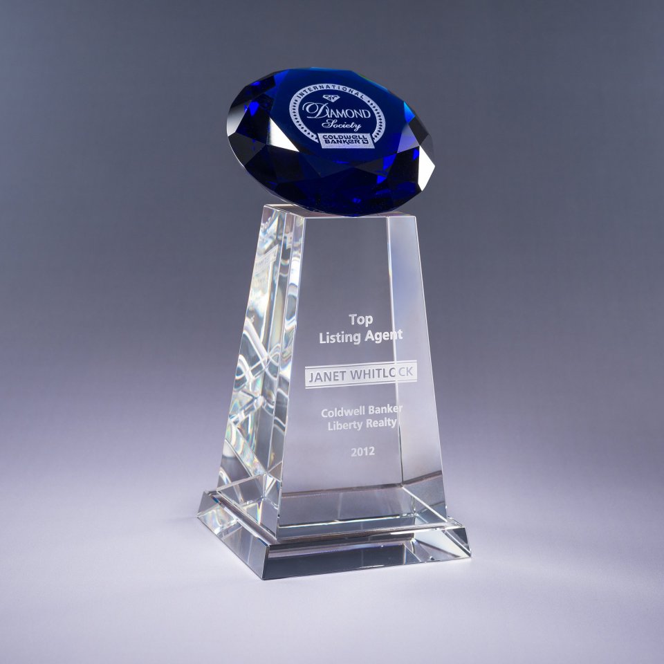 For an award that truly sparkles, present our Diamond Spire. Choose from clear, red, amber, green or blue diamonds mounted to a clear optic crystal base.