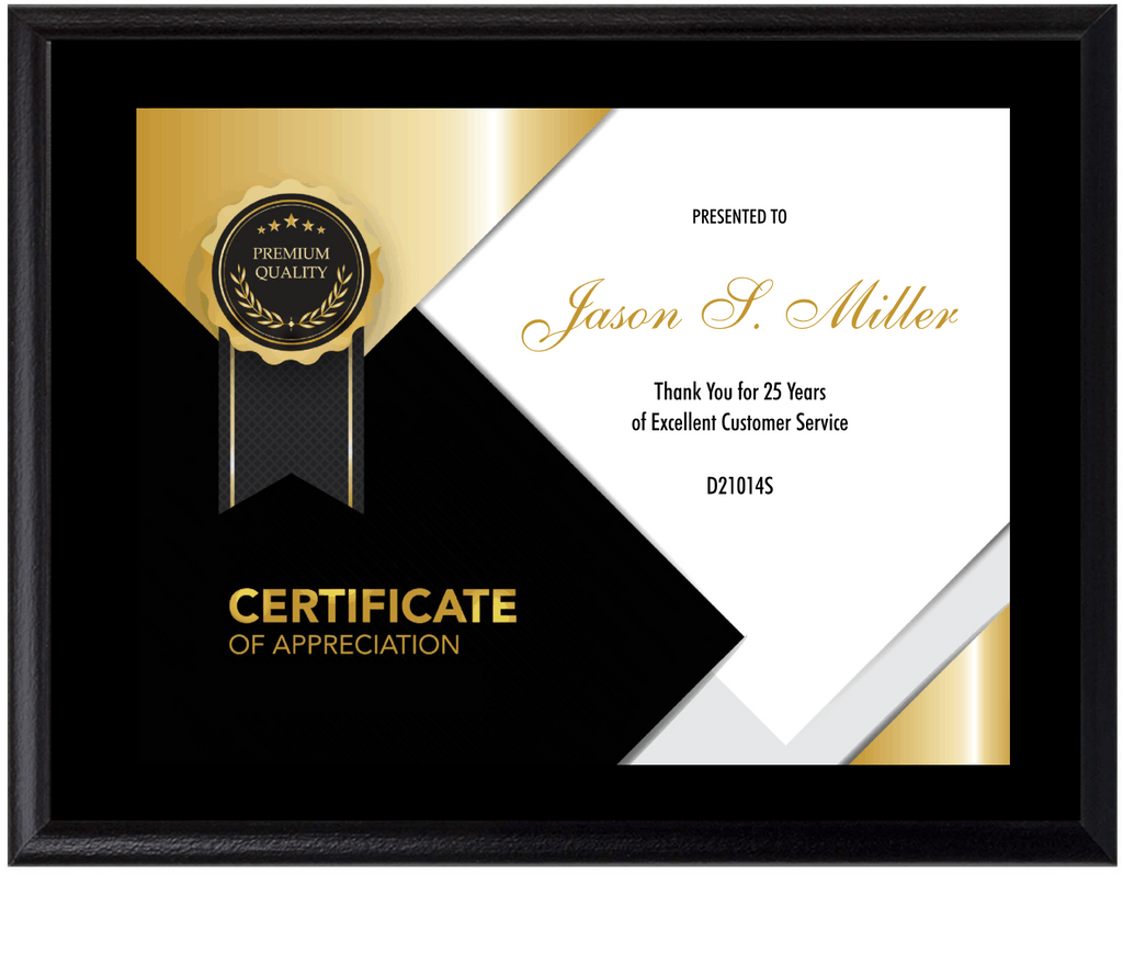 Ebony Piano Finish Plaque with full-color digital printing directly on the plaque. The modern appearance makes an elegant impact and looks great in the office or lobby. The large imprint area can easily accommodate any logo and text.