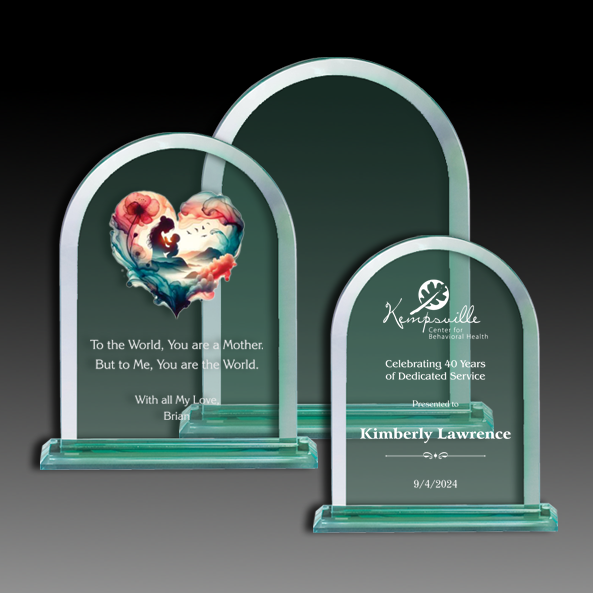 This Jade Dome Plaque is a striking symbol of corporate achievement. With a tint of jade green, this prestigious award has beautiful curved edges and will be the center of attention at your next recognition ceremony.