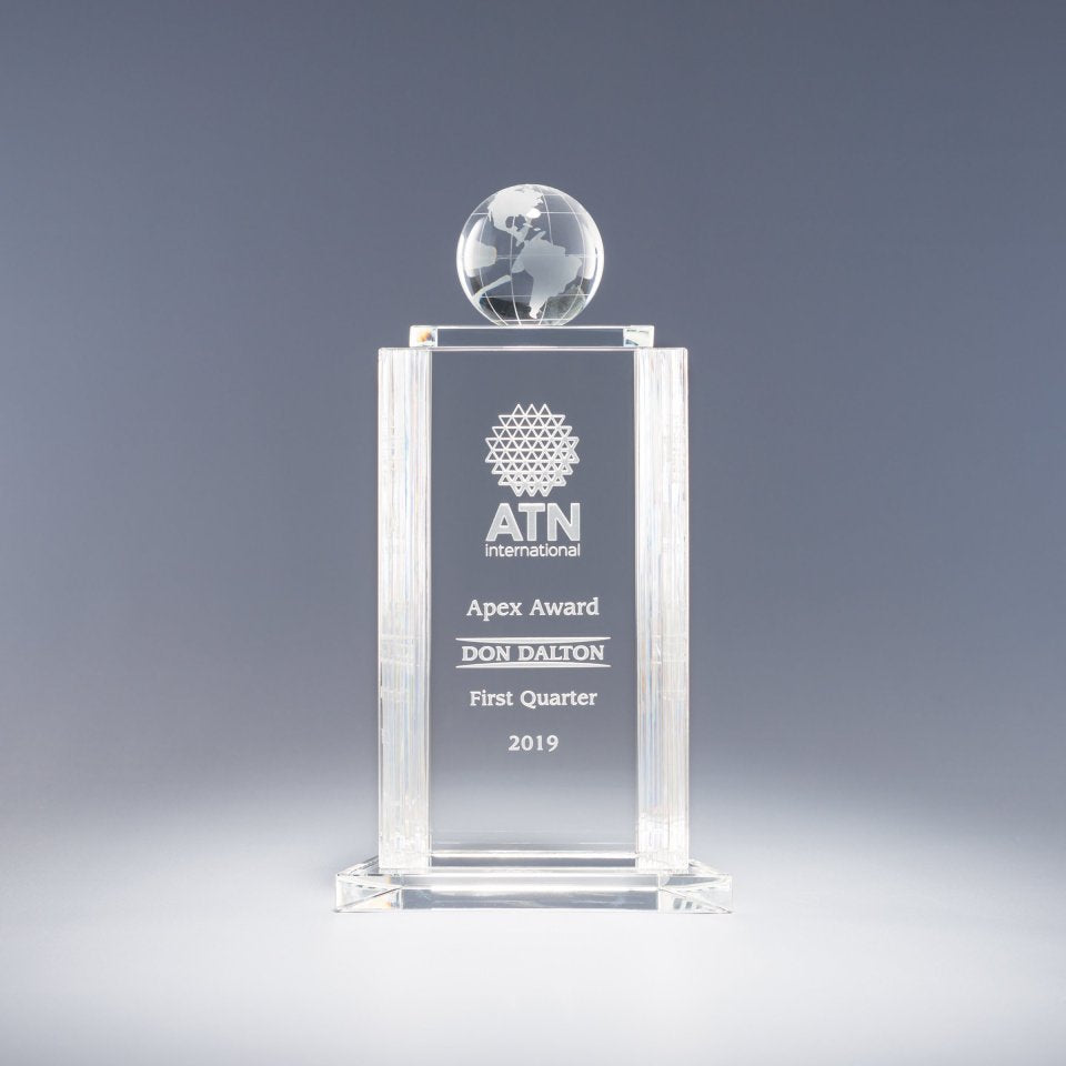 Symmetry and hand-cut flutes add light and classicism to our Helenic Award. Designed to add presence to your message, this steadfast design will long be cherished.