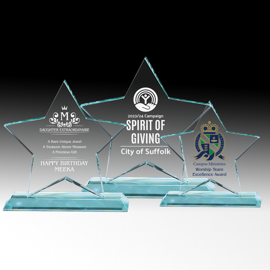 This star award with jade accents is simple yet beautiful. They have a modern appearance which accommodates well on many settings. This award is a perfect piece that will honor your employees' star performance. Sizes are available in three ranging from 5.5'' to 7.5''. Make someone's day with this perfect award.