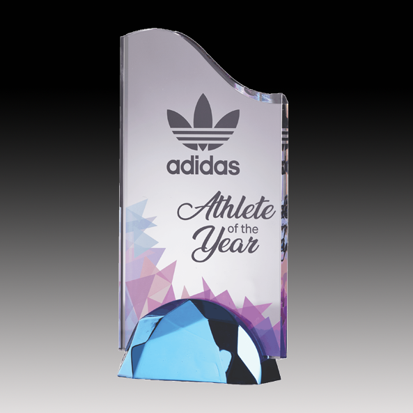 This Jade Glass award features precise digital printing and elegant bevels, mounted securely on a sturdy metal base. Available in two distinct base shapes and a variety of colors, it offers customizable options to suit any recognition event. Its refined design combines durability with a sophisticated aesthetic, making it an excellent choice for honoring achievements with lasting impact.