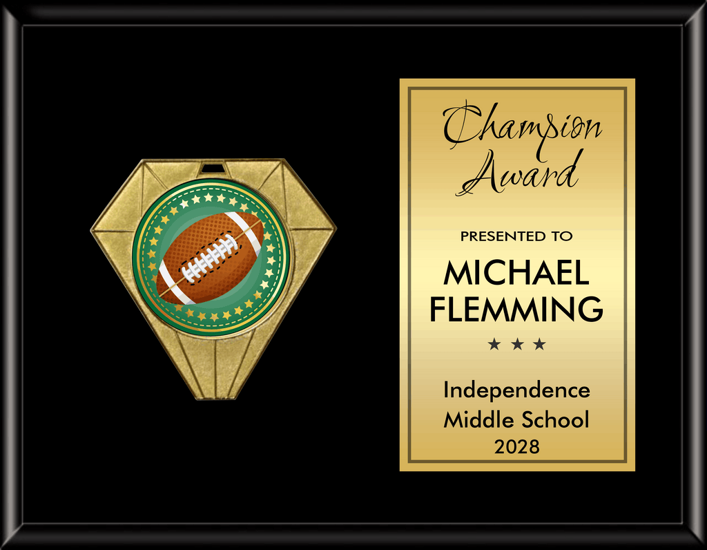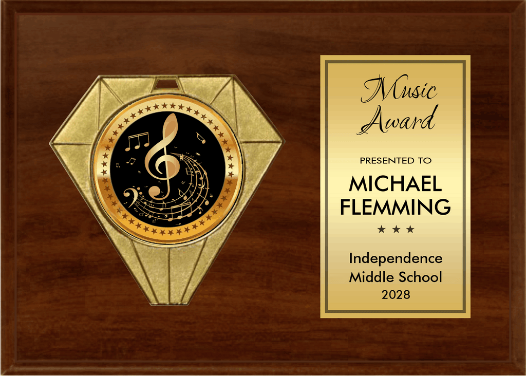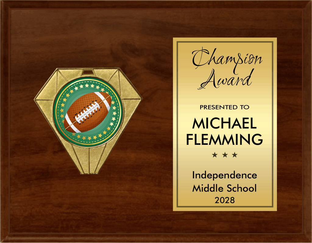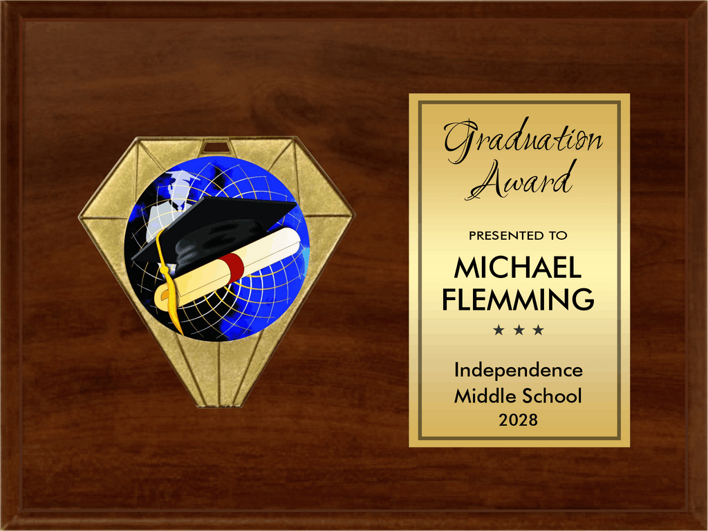 Make a statement with our Jewel Plaque Series Horizontal Plaque. Its elegant design, featuring our exclusive jeweled diamond medallion, will surely impress. Personalize the medallion with an activity logo or your own design for a unique touch. And with a gold plate included, you can add a special message or accolades for the recipient. This plaque is available in 4 sizes and two color options - a handsome cherry finish or an rich ebony finish.