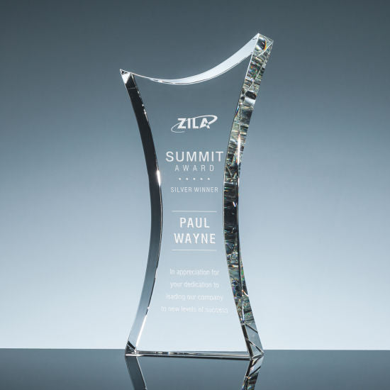 The Kelvedon Award is an elegant crystal recognition piece offered in three distinct sizes to suit various achievements. Its pristine clarity and refined design make it an excellent choice for honoring excellence with a timeless, professional touch. Each size maintains the award’s sophisticated aesthetic, ensuring a distinguished presentation that highlights the recipient’s accomplishment with lasting impact.