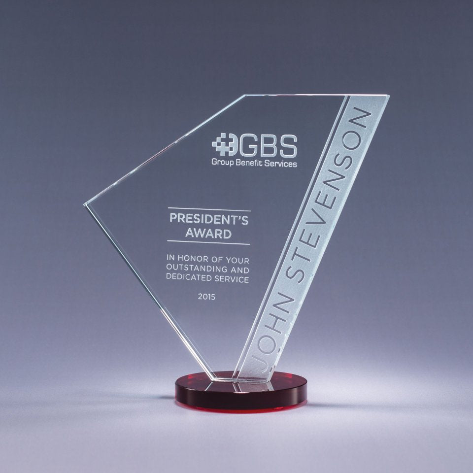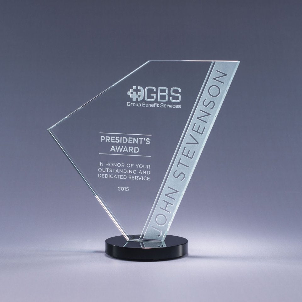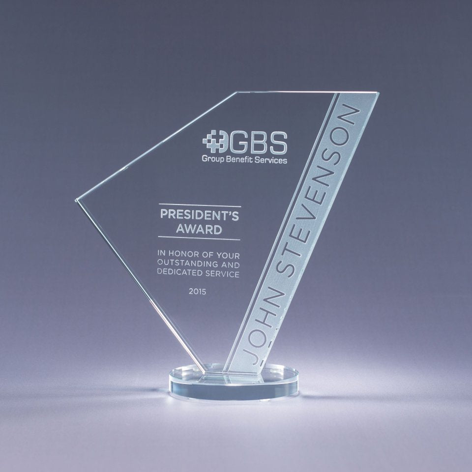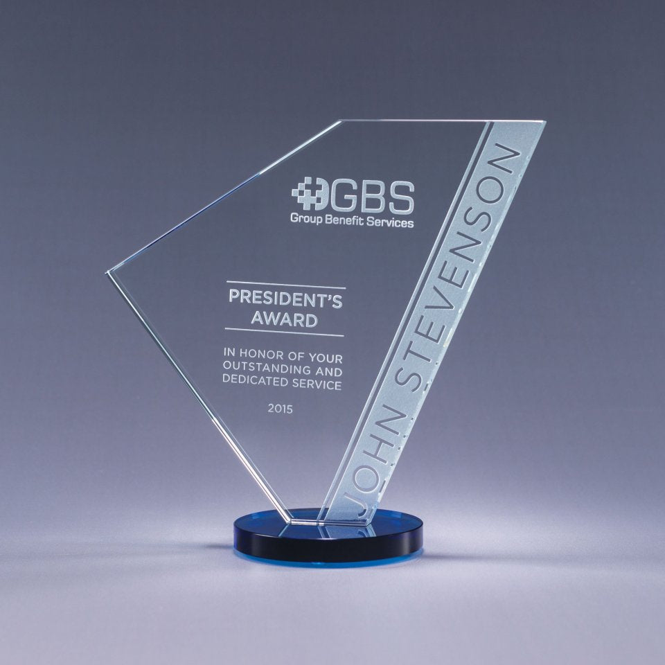 A streamlined silhouette gives our Navigate the look and feel of motion. The perfect fit for leadership, our unique, reverse deep-etch is used to highlight one's name and drive the message home. Made of Starphire Crystal, the base is available in clear, black, red or blue optic.