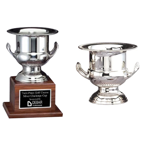 This 9" nickel plated wine cooler has ribbed details, a wide lip and curved handles. You have the option to add a walnut base which is engravable. This will be great for any event where wine will be served. Purchase this for your next event!