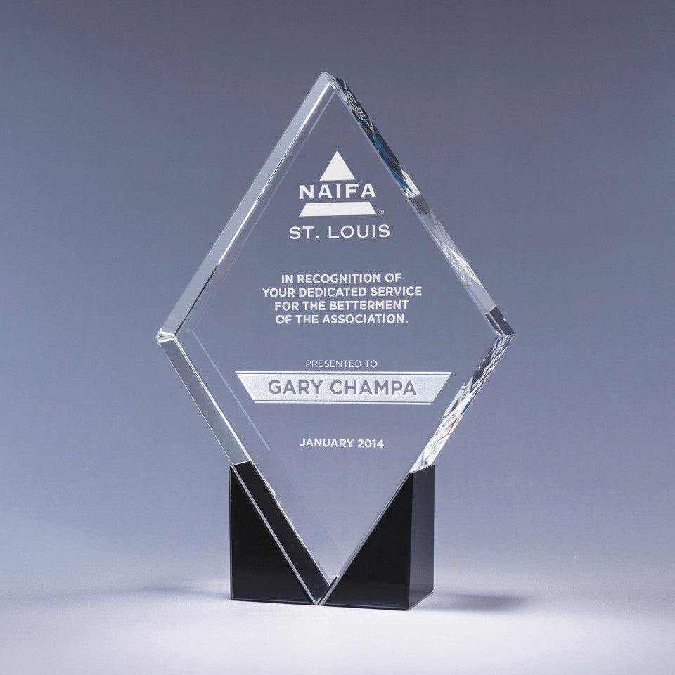 Mundane awards should not be the property of superstars. Their dynamic style commands recognition that lives up to their talents. Presenting Paradigm! A designer award featuring black and clear optic crystal that says it all. This piece has substantial weight giving it the look and feel of quality.