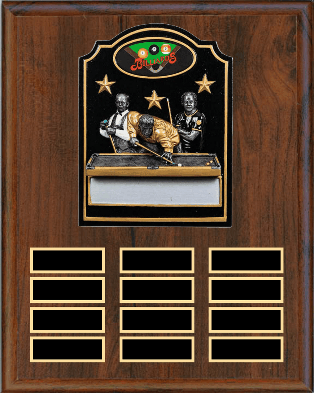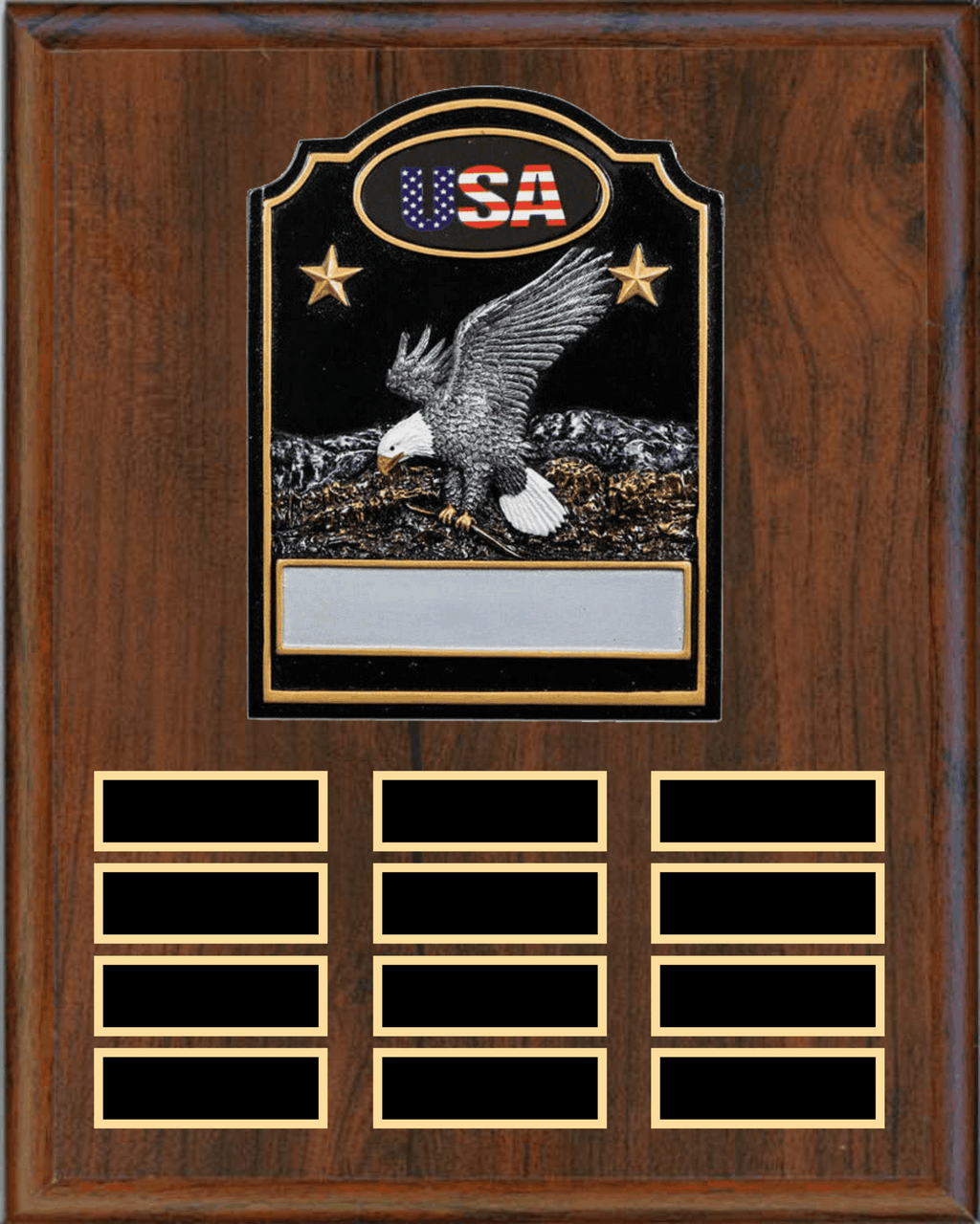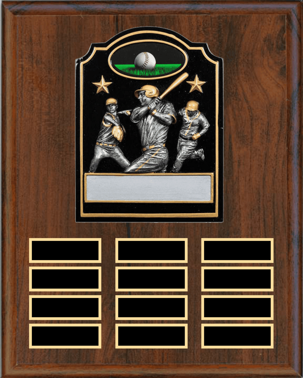 Perpetual Plaque with 12 Plates and RESIN honors achievements year after year with this 12x15 perpetual plaque system. Features 12 individual plates with elegant resin accents, allowing you to recognize new honorees annually without replacing the entire award. The durable construction and professional presentation make it an ideal choice for corporate recognition programs, sports competitions, and institutional awards. Each plate can be customized to showcase recipient names and accomplishments, creating a lasting legacy of excellence that grows with your organization.
