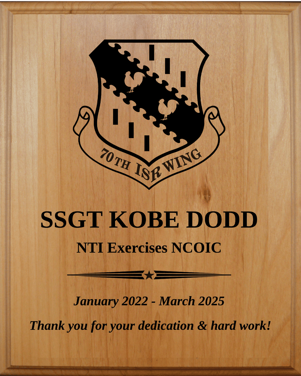 An impressive award featuring a solid Alder light wood plaque. Laser engraving directly in the wood makes these plaques are the ideal way to honor the Employee of the Month or Employee of the Year.