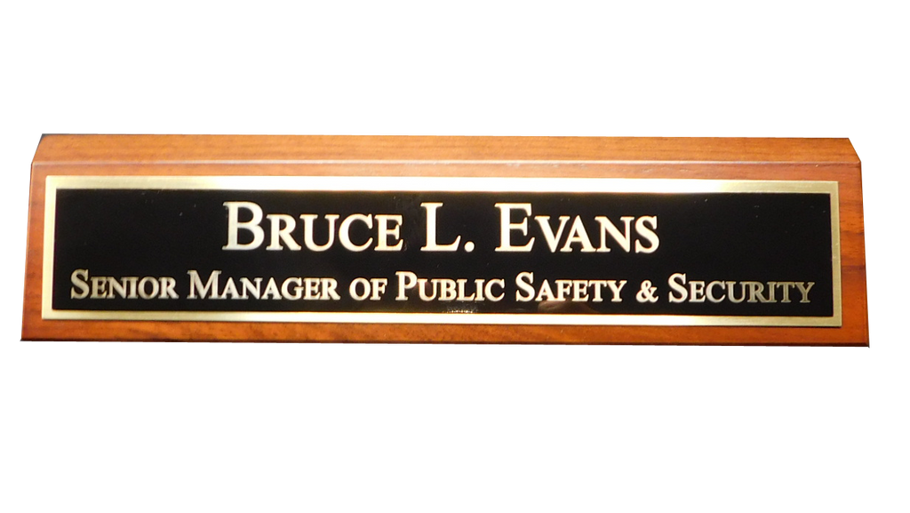 Recognition can mean many things. Solid with two-tone gold plates that hold your name and/or title. It can be printed in full-color for total corporate recognition. Available in 2 sizes.