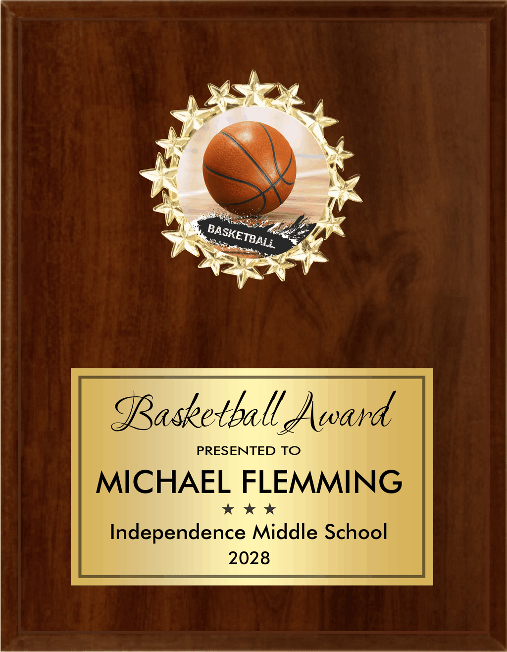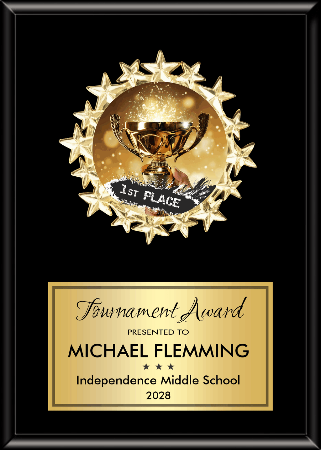 Highlight the shining stars on your team or organization with our Starburst Medallion Plaque. Customize with your logo or choose from a variety of stock designs. Made with an ebony or cherry finish, this plaque comes in 5 sizes and includes a personalization plate.