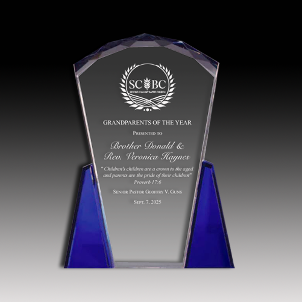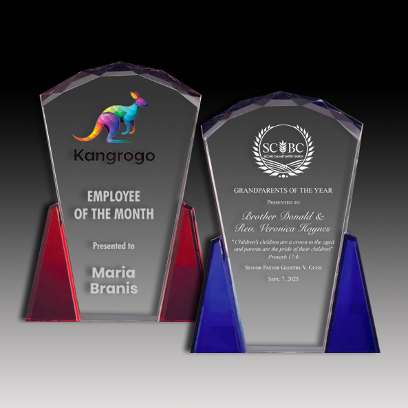 Crafted from super thick, optically clear crystal, this award features a faceted top and angled accents that enhance its brilliance and depth. Its substantial weight and flawless clarity make it an impressive recognition piece, ideal for honoring outstanding achievements with elegance and distinction.