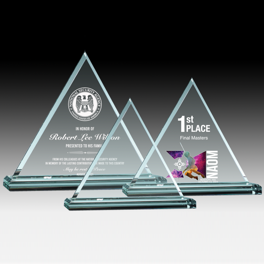 Celebrate success with our Triangle on Jade Base award, now available in 3 sizes! Perfect for recognizing achievements, this triangle makes a stunning addition to any office or home. Show your appreciation with this elegant and meaningful award.