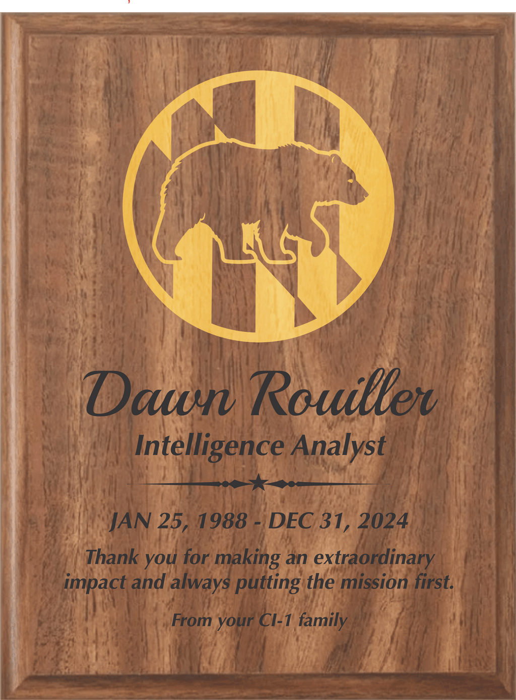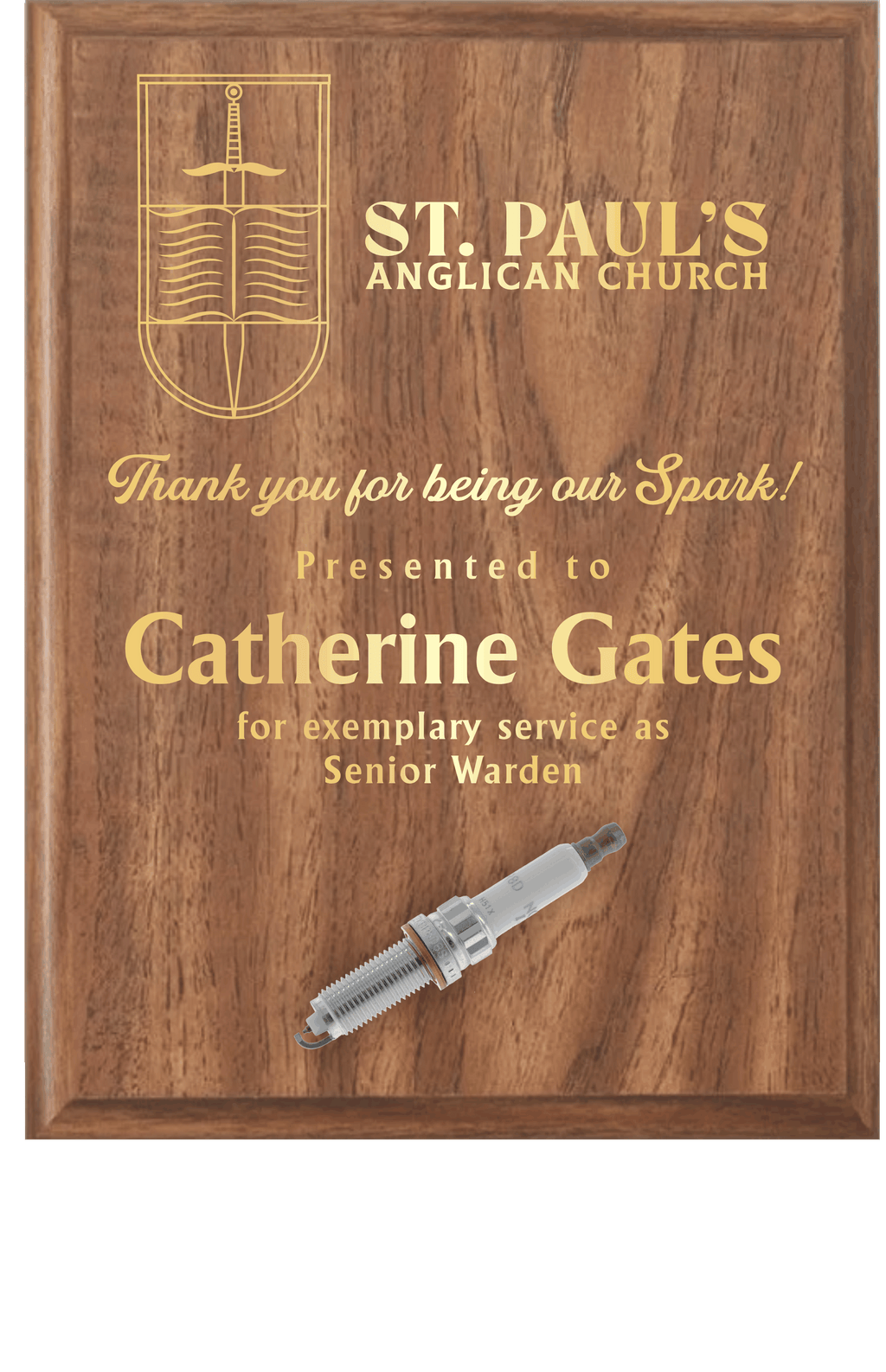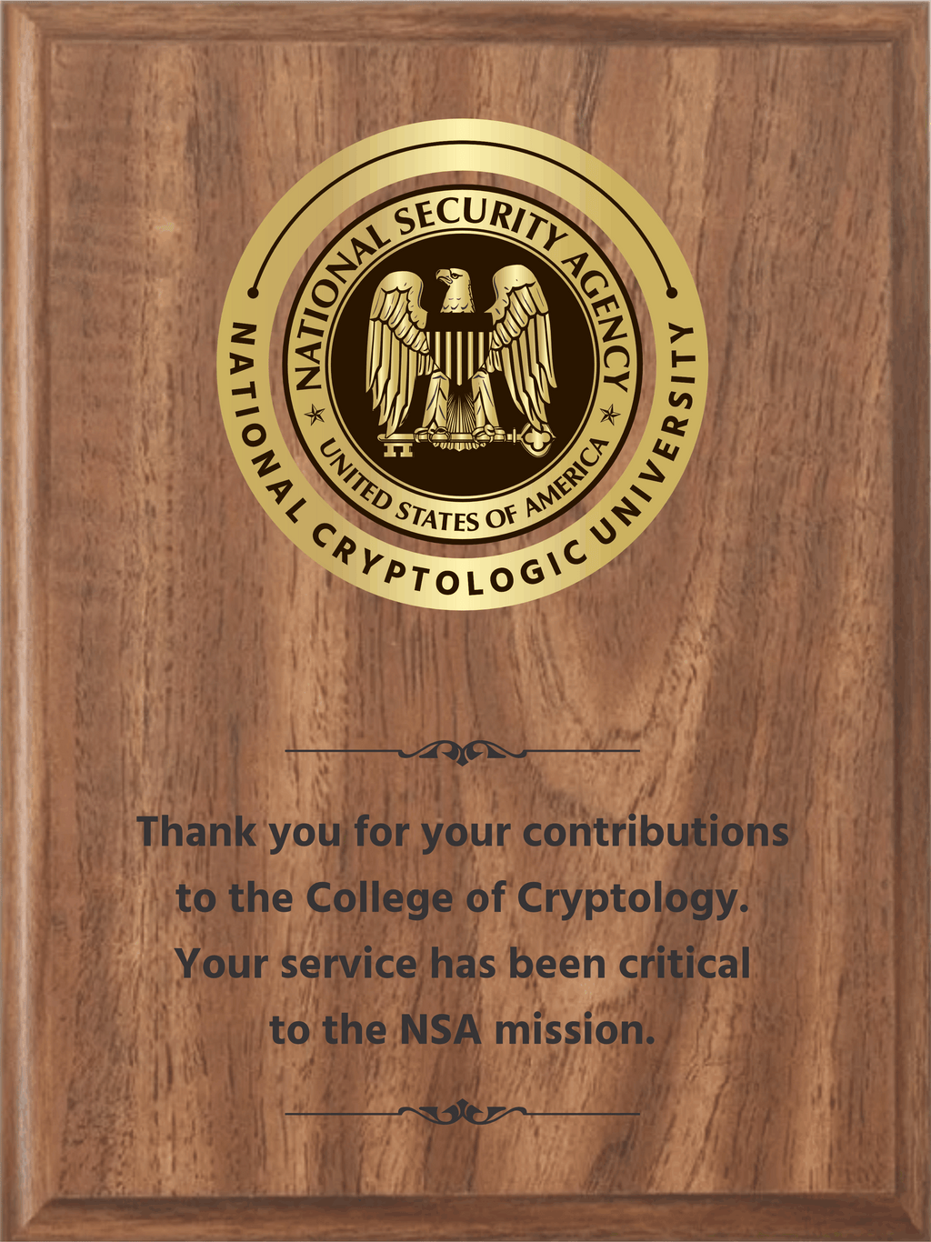 Classic and modish walnut plaque with foil highlights finished with roman cove edge is just what you need to brighten your employee's day. This plaque has a large imprint area that allows you to express your appreciation in depth and also put your company's logo or name. It comes in eight different sizes ranging from 4''x6'' to 12''x15''. This plaque is a perfect way to honor your employee's years of service.