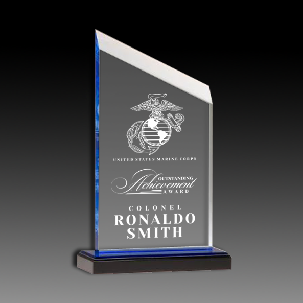 Zenith Series acrylic with blue accents, black base with blue mirror top. 0.5" thick clear acrylic. Individually gift boxed.